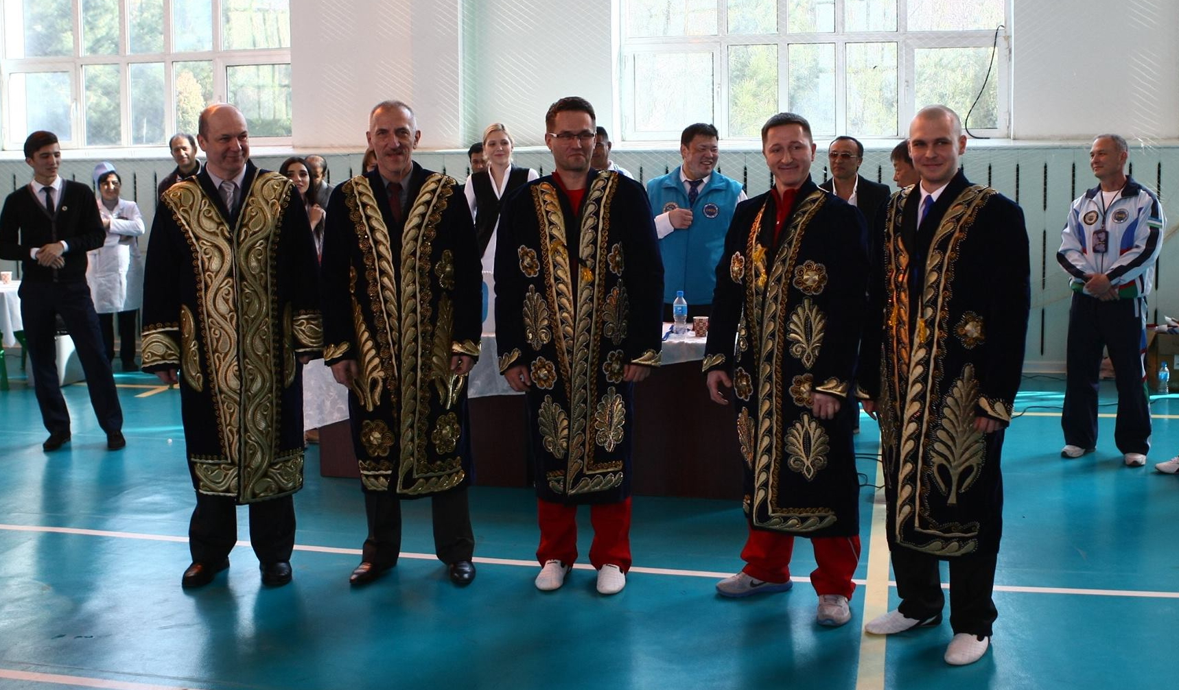 Przyjęcie odbyło się zgodnie z miejscową tradycją. Nasz gospodarz mistrz Genady Han wyznaczył profesora Lec Yugay do objęcia funkcji „Tamady” po polsku „głowy stołu”. Jego zadaniem jest utrzymywać porządek podczas posiłku, zabawiać słuchaczy, wygłaszać przemówienia, przedstawiać po imieniu i prezentować osobę, która będzie wygłaszała toast, udzielać wybranym osobom prawa do głosu i wznoszenia toastów. W bankiecie udział wzięli również obecni na meczu przedstawiciele naszej placówki dyplomatycznej. Była to wspaniała okazja dla naszych zawodników do uzyskania informacji na wiele interesujących zagadnień i odpowiedzi na pytania, od zwyczajów panujących w Uzbekistanie po zagadnienia związane z funkcjonowaniem naszej ambasady i konsulatu.