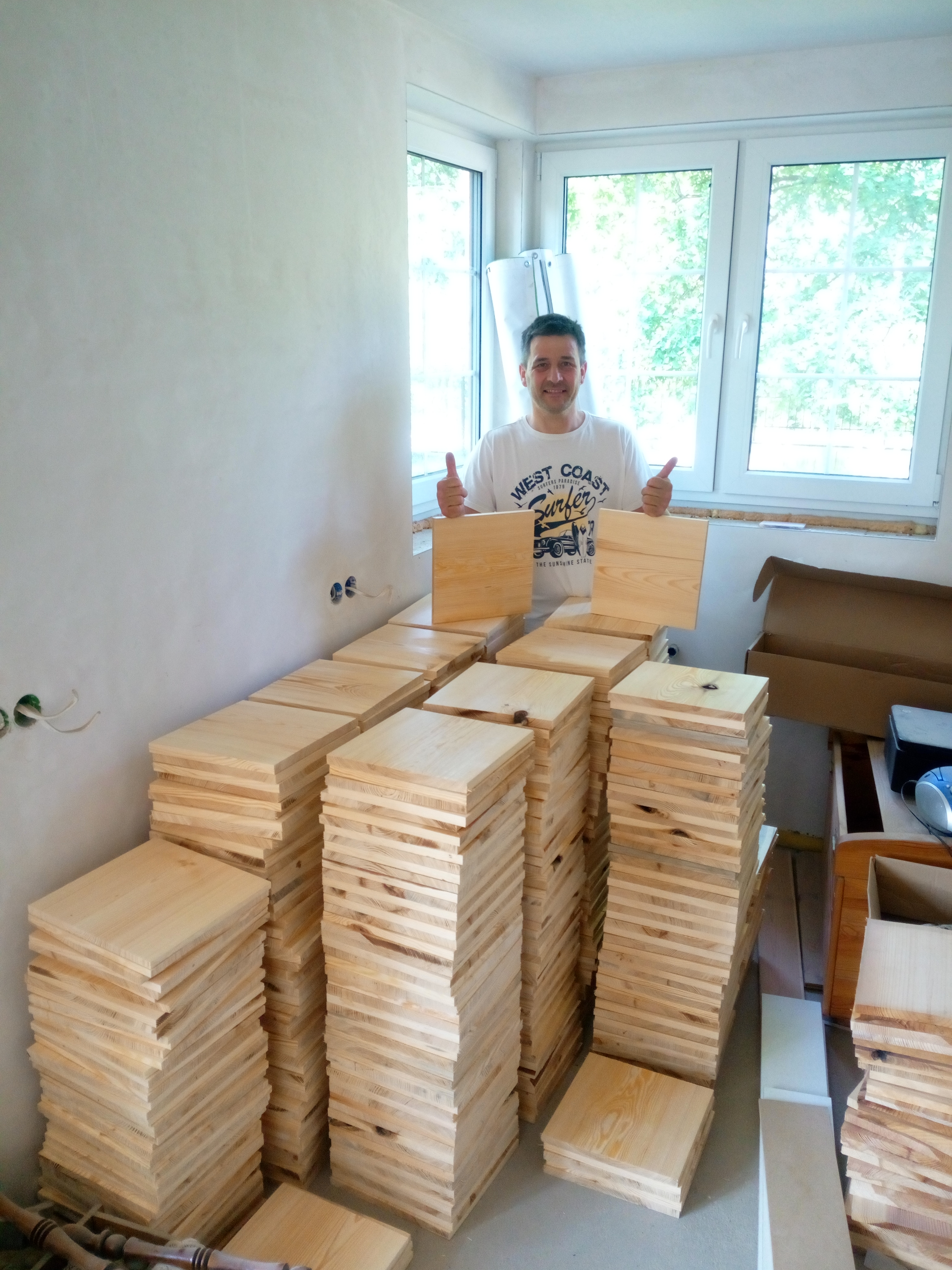 Każdemu uczestnikowi egzaminu przysługuje 15 sztuk desek mężczyźni, 12 sztuk desek kobiety o znormalizowanych wymiarach 30 x 30 x 2 cm (dla juniorów 1,5 cm grubości).