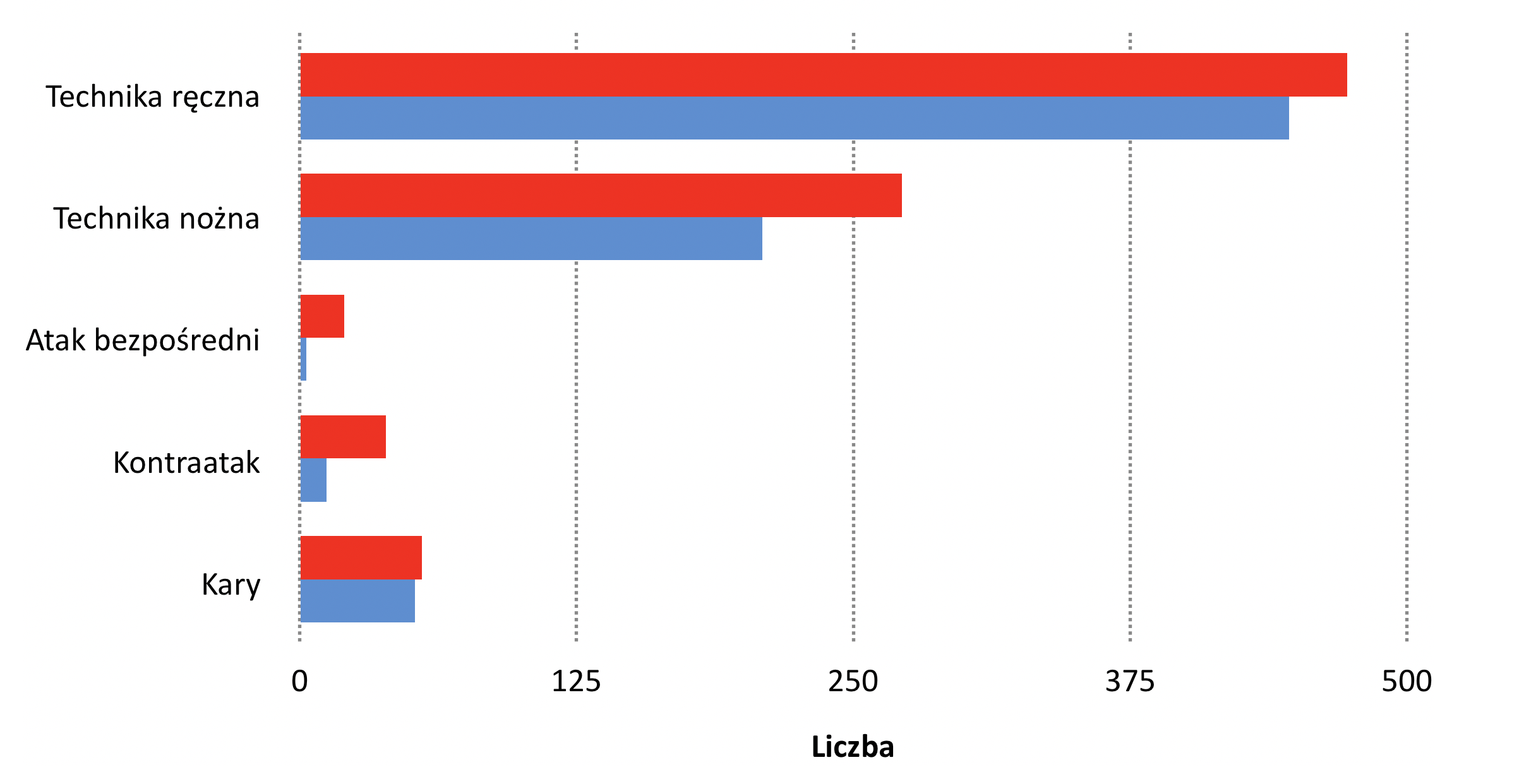 Analiza siedmiu pojedynków kat. +72 kg stoczonych podczas MMC 2018 wykazuje dominację oznaczonych kolorem czerwonym, nawet w liczbie ostrzeżeń (ryc. 2).