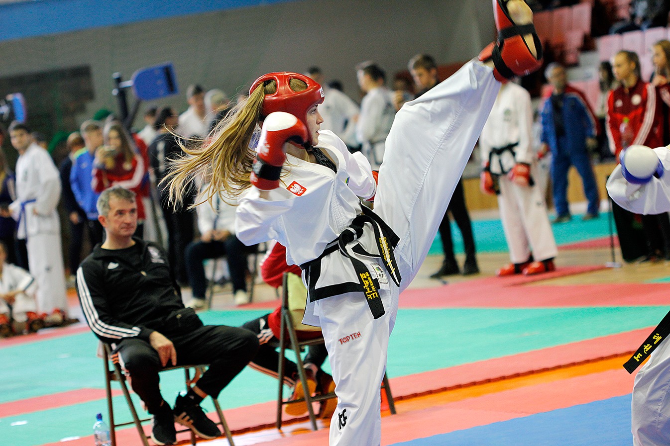 - W tej wyższej wadze faworytka Zofia Nowakowska z Częstochowskiej Akademii Taekwon-do uplasowała się na 3 lokacie. Bez niespodzianek w kat. 60 kg – Karolina Dziura z KS Dragon Janów przed Anastazją Stanilewicz z AT Virtus w Łomazach. W 65 kg mała niespodzianka, bo faworytka Laura Środowska z KS Dragon Janów uległa koleżankom spoza kadry, ale usprawiedliwieniem jest drobny uraz. Bardzo dobrze pokazała się zawodniczka Gdańska Katarzyna Janiszewska, złota medalistka w tej wadze. Jeśli chodzi o kadrę narodową, musi zdać egzamin na czarny pas. Natomiast w kategorii powyżej 65 kg bez niespodzianek, zwycięstwo Amelii Małyski z MKS Lewart AGS Lubartów. Techniki specjalne zgodnie z oczekiwaniami – Karolina Dziura, Julia Bulska i Maria Bojarska z KS Dragon – stwierdził szkoleniowiec.
