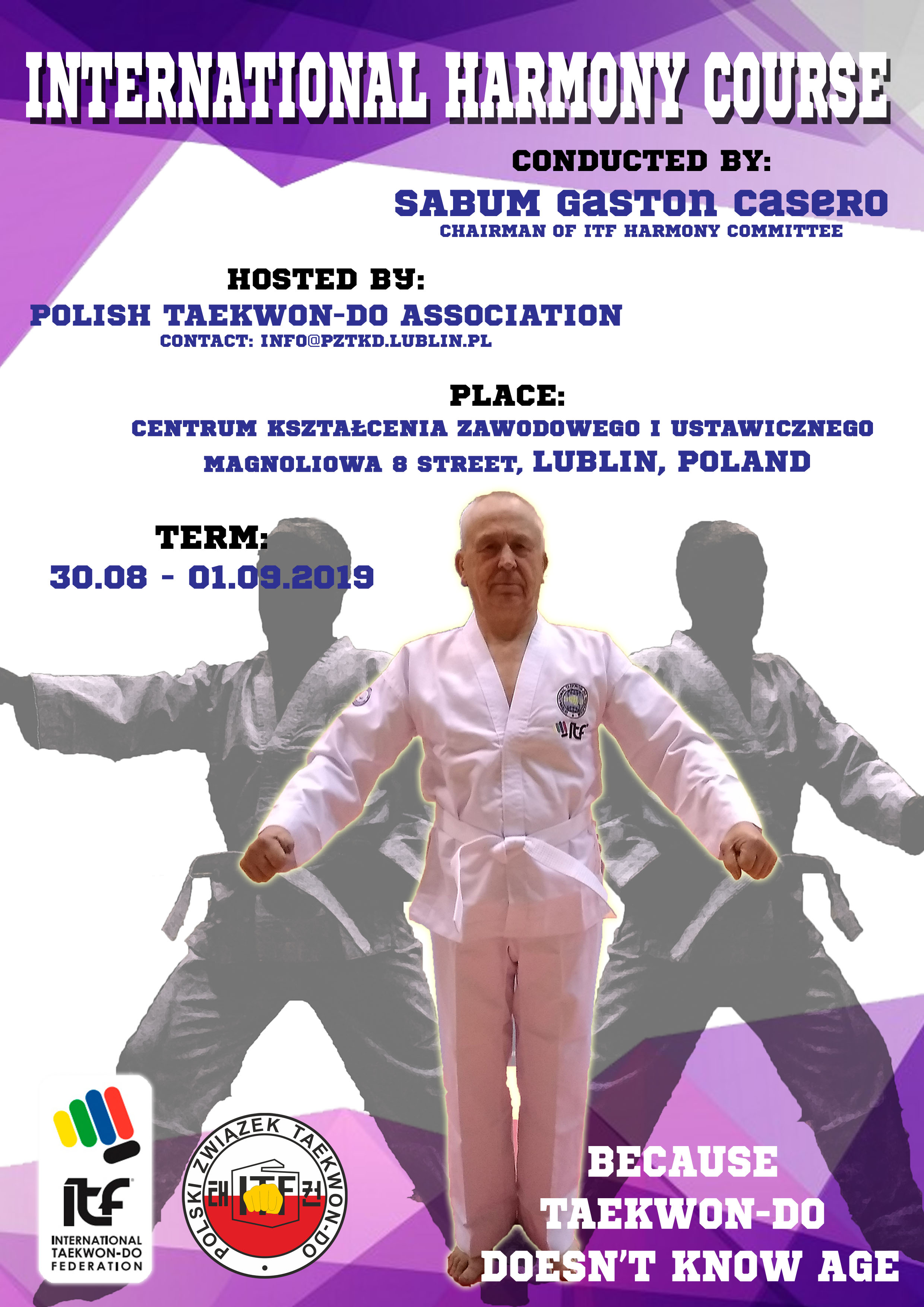 Międzynarodowa Federacja Taekwon-do i Polski Związek Taekwon-Do mają zaszczyt zaprosić na Międzynarodowy Kurs Harmony, który odbędzie się w dniach 31 sierpnia - 1 września 2019 r. W Lublinie.