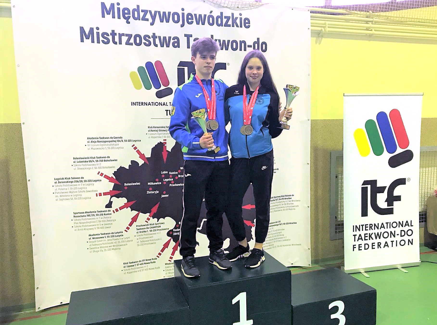 Młodzi zawodnicy Legnickiego Klubu Taekwon-do w minioną sobotę (17.03.2018 r.) wystartowali w Międzywojewódzkich Mistrzostwach Juniorów i Juniorów Młodszych. Zawody rozegrane w podwrocławskiej Borowej stanowiły pierwszą eliminację do tegorocznych XXII Mistrzostw Polski Juniorów Młodszych Nowa Ruda Słupiec 2018 oraz XXVII Mistrzostw Polski Juniorów Kłobuck 2018. Legniczanie w obu kategoriach wiekowych wywalczyli łącznie 19 medali, w tym 9 złotych. W turnieju wystartowało 105 zawodników z 12 klubów. W klasyfikacji medalowej Międzywojewódzkich Mistrzostw LKT Legnica uplasował się na drugim miejscu. Zwyciężył WSKT Wrocław.